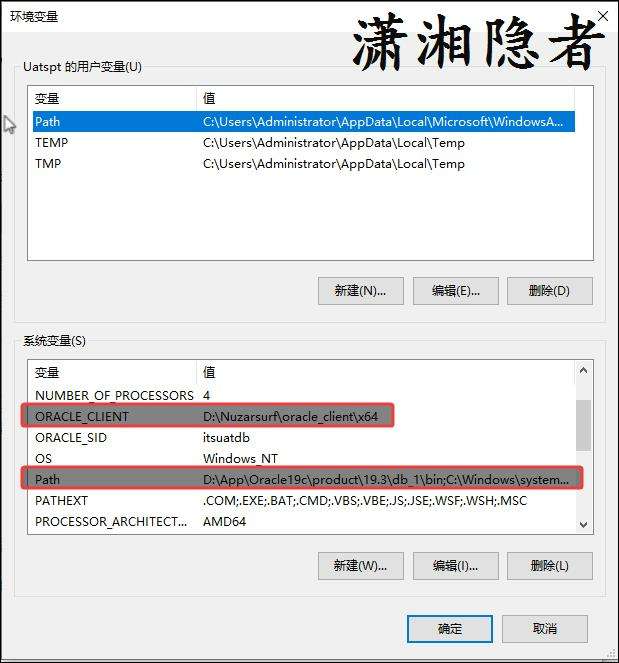 检查D:AppOracle19cproduct19.3db_1networkadmintnsnames.ora中的网络服务名test的配置信息, 完全正确.没有任何问题.然后仔细检查,发现Windows环境变量中有两个Oracle Client的配置(当时不了解这些情况),具体如下所示: