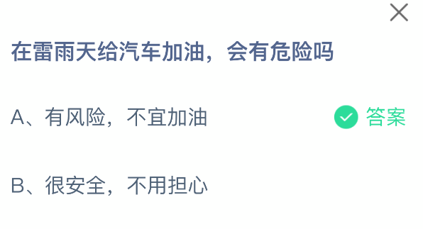 以上就是在雷雨天给汽车加油,会有危险吗,支付宝蚂蚁庄园2025年10月31答案最新,更多精彩内容,请点击关注阿里西西手游网更新!