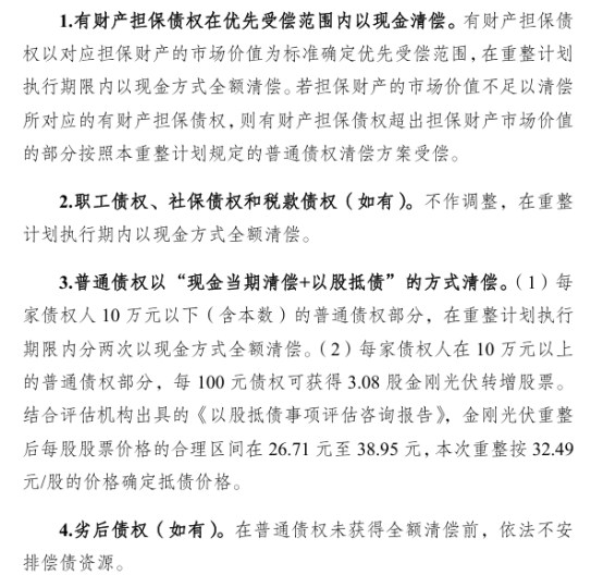 金刚光伏提供多种偿债资源并提升债权清偿率: