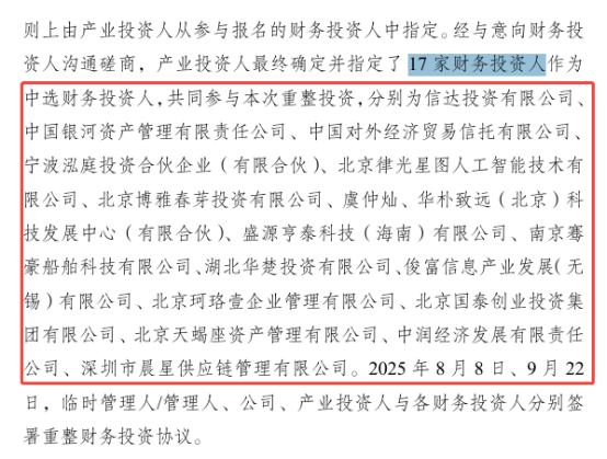 事实上,这些投资人并非单纯“择优录取”,而是兼顾“产业资源+资金实力+风险承受力”,形成“三位一体”的资本架构:欧昊集团出资2.68亿元,受让5,400万股转增股票,确保对企业的控股权;产业合作伙伴弘琪云创出资1.05亿元,受让1,620万股转增股票,其母公司在数据中心、AI算力领域的成熟布局,将为金刚光伏开辟新赛道;阵容极其豪华17家财务投资人出资14.31亿元,包括银河资产、信达投资等“国家队”,也有对外经贸信托、宁波泓庭投资等专业机构,受让1.908亿股转增股票,有效填补资金缺口。