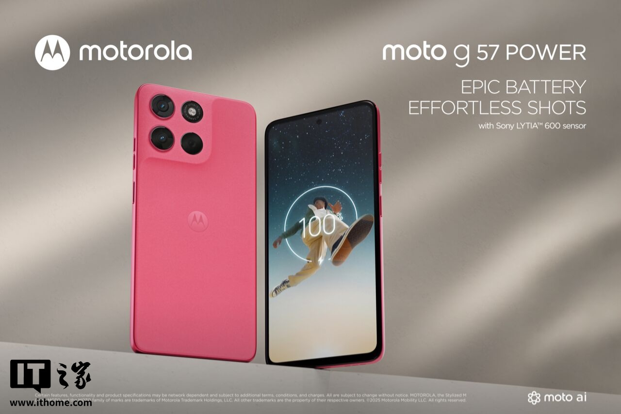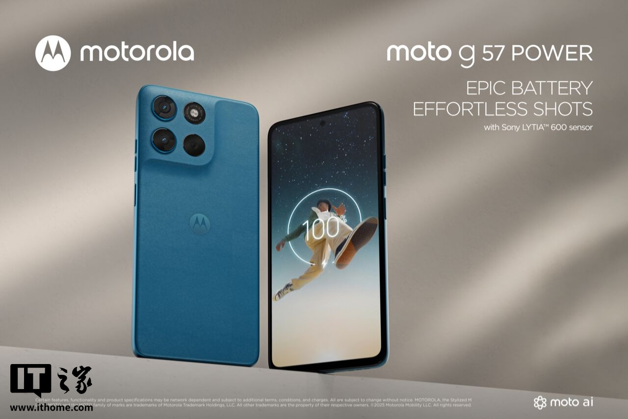 alixixi 11 月 5 日消息,摩托罗拉现已在海外市场推出 Moto G57 Power 手机,配备 7000mAh 电池,定位中低端,搭载高通骁龙 6 Gen 4 芯片、120Hz LCD 屏幕。