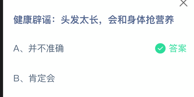 以上就是健康辟谣:头发太长,会和身体抢营养,支付宝蚂蚁庄园2025年11月6日答案最新,更多精彩内容,请点击关注阿里西西手游网更新!