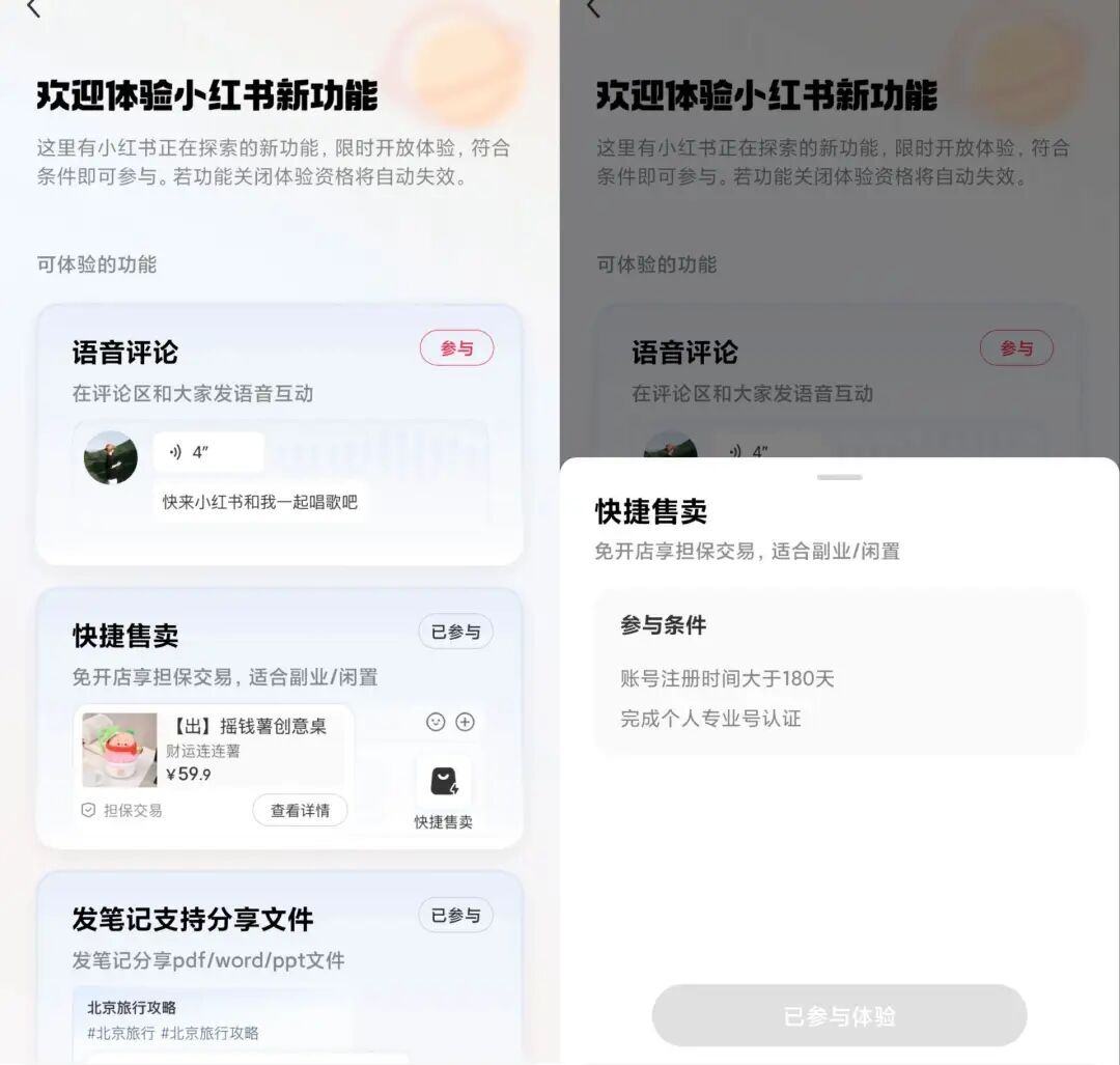 此外,小红书正在内测二手电商“快捷售卖”新功能,用户可以在笔记下方直接挂上想卖的闲置商品链接,或者在跟别人聊天的时候,直接把商品卡片发过去。