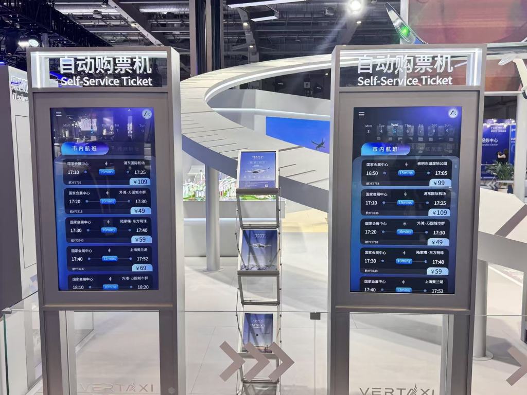 如此,观众能够沉浸式体验整个“扫码打飞的”、一键订行程的智慧出行方式。(www.thepaper.cn)记者实地体验注意到,在当前的模拟系统中可选择从国家会展中心(上海)飞往陆家嘴、浦东国际机场、苏州金鸡湖、无锡鼋头渚、杭州西湖、浙江义乌等地,班次密集、票价亲民。例如,从国家会展中心(上海)飞往外滩仅需49元,全程10分钟;跨城航线票价一般在100元到300元之间,半小时抵无锡,不到一小时可达杭州。