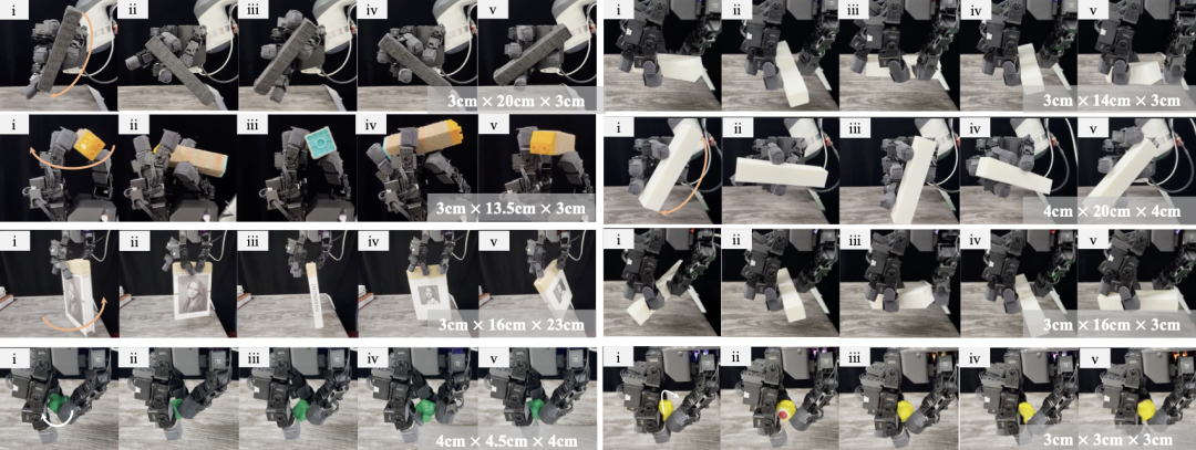 跨物体精准操控:从微小零件到大书本、长棍、复杂几何体,首次实现跨类别、跨尺寸、跨姿态的稳定旋转。