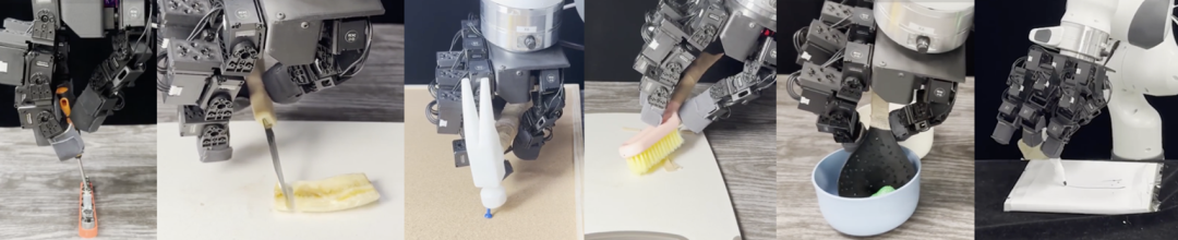 借助 DexNDM,机器人不仅能“抓得稳、放得准”,还能完成复杂的、涉及旋转的手 — 物 — 物交互,实现工具使用与长程装配等对系统鲁棒性要求极高的任务,真正迈向“能转能用”的灵巧操作。