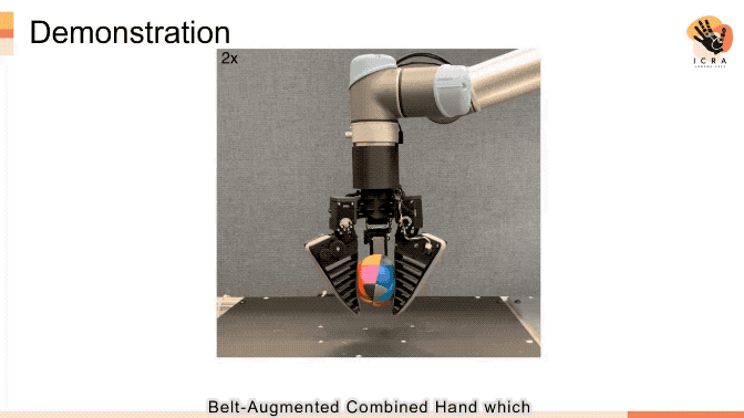 ICRA 2023 的 BACH (Belt-Augmented Compliant Hand) 则通过皮带增强的柔性机械手实现了手腕向下的旋转操作,但这种特殊结构难以迁移,也带来了额外的硬件成本。