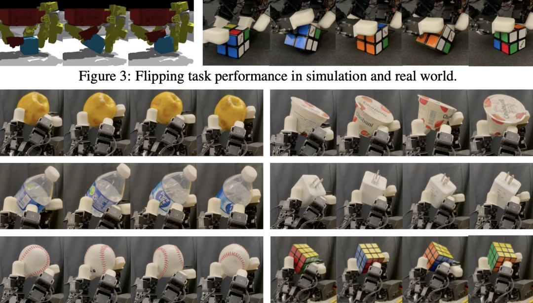 不仅首次在手掌朝下的姿态下,实现了 10–16cm 长物体沿长轴的空中完整旋转,还能够稳定泛化到更多、更具挑战性的物体类型。