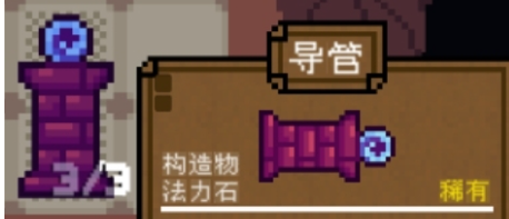 该道具稀有度较高,需与法力石配合放置才能发挥最大效用。导管能够激活周围邻近以及对角位置的构造物,使其获得传导属性加成。然而需要注意的是,导管本身具有特定的空间要求,若放置位置过高,则可能无法正常触发联动效果,因此在布局时应优先考虑其所在行数,确保处于有效作用范围内。