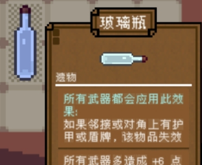例如玻璃瓶这类遗物,能够在满足条件时为所有武器提供额外6点伤害加成。但其生效前提是上方或对角位置不能存在护甲或护盾类物品,否则技能将被抑制。此外,炸弹等其他遗物也具备回血、减伤等多种辅助功能,适用于多种战斗场景,灵活运用可大幅提升生存能力与输出效率。