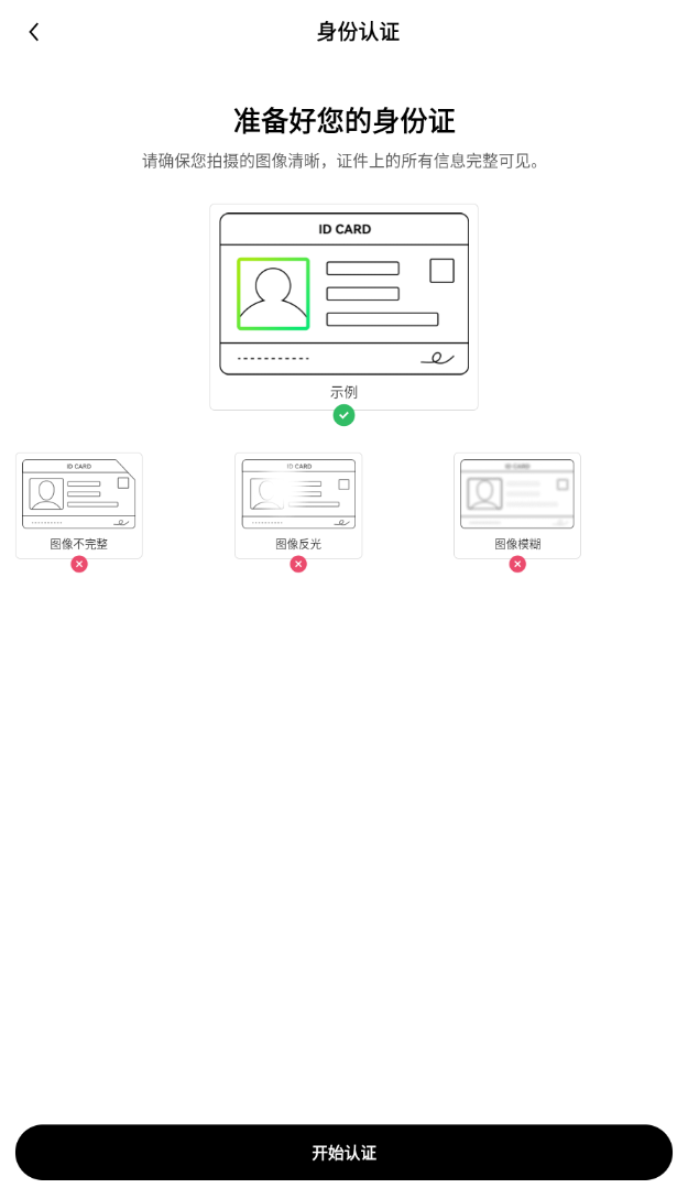登录账号后,点击左上角个人中心图标--【个资料和设置】--【个人资料】--【身份认证】,进入身份认证页面。如果未完成认证,请点击【立即认证】,您需要上传证件照,如身份证的正反面,并通过人脸识别,根据页面提示完成证件上传和实人认证。