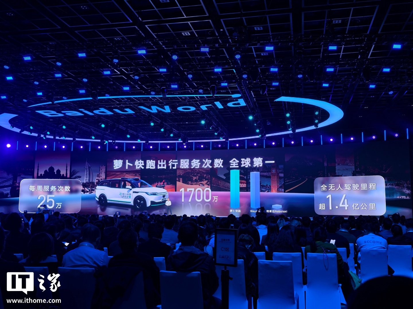 最新数据显示,萝卜快跑每周全无人订单数已经超过 25 万,全球出行服务次数已超 1700 万,成为全球第一。其服务覆盖全球 22 座城市,全无人驾驶里程突破 1.4 亿公里,自动驾驶总里程超 2.4 亿公里。