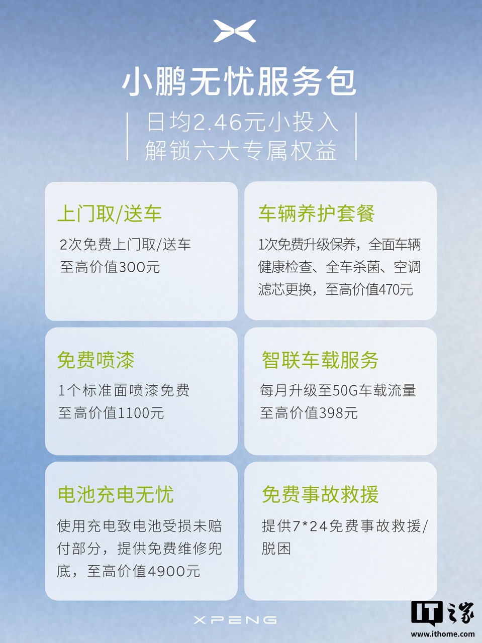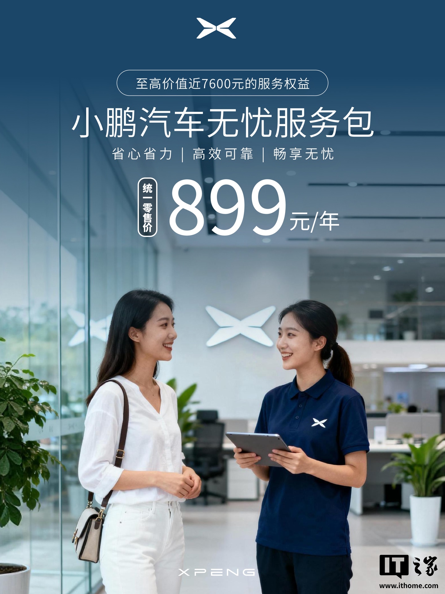alixixi 11 月 14 日消息,小鹏汽车“无忧服务包”于昨日上线,售价 899 元 / 年,可享价值 7600 元六大服务权益包: