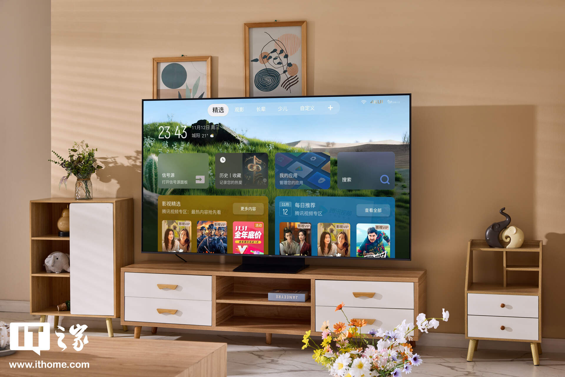 这种“纯平一体”设计的最大优势在于,无论是座装还是挂装,电视都能近乎完美地贴合墙面,宛如一幅“壁画”,充分满足了当下用户对家居一体化美感的追求。