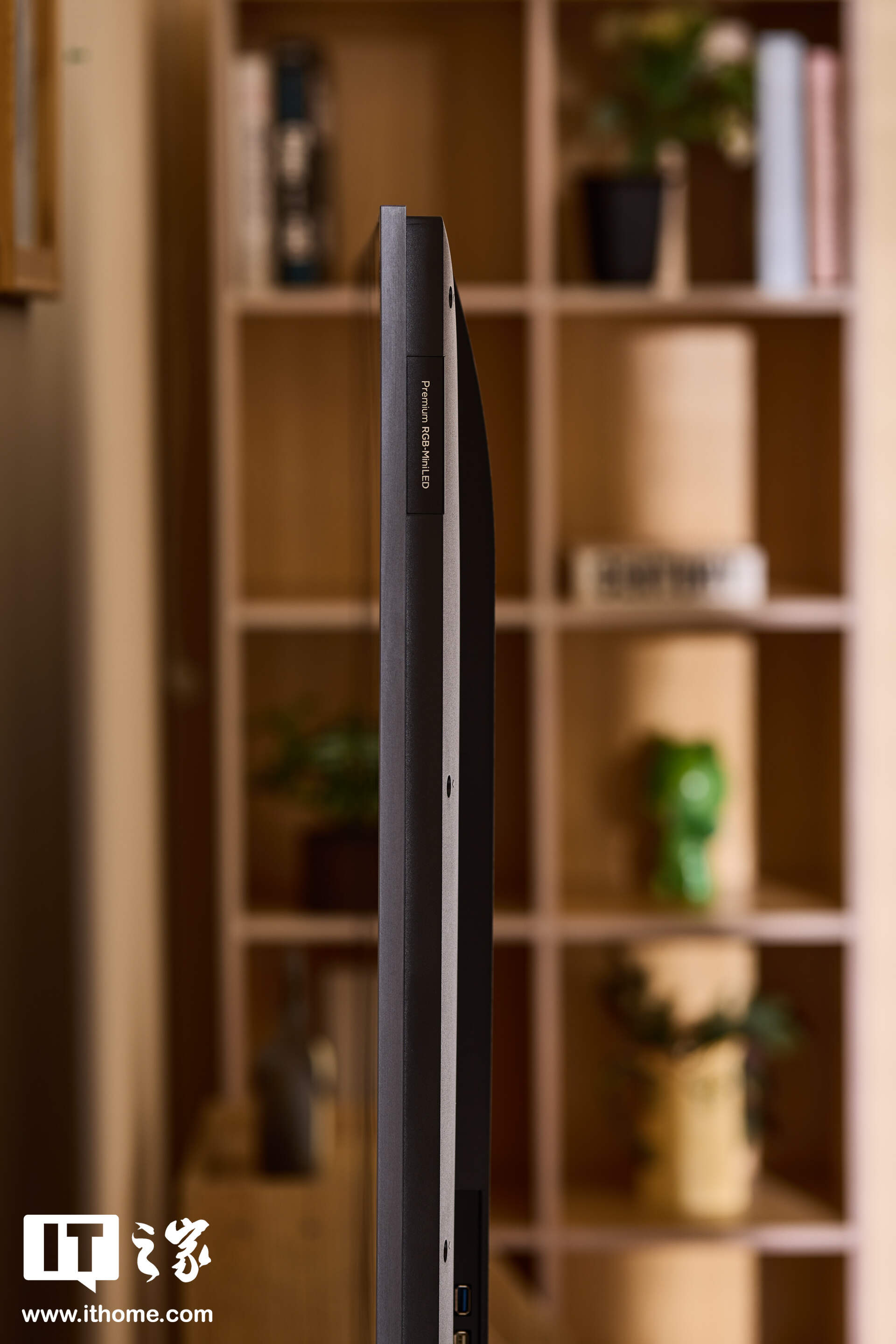 视线转向侧面,便能更直观地体会到“超薄”的含义。Q9M 的整机背部几乎做到了纯平,彻底告别了传统电视突兀的“小书包”结构。