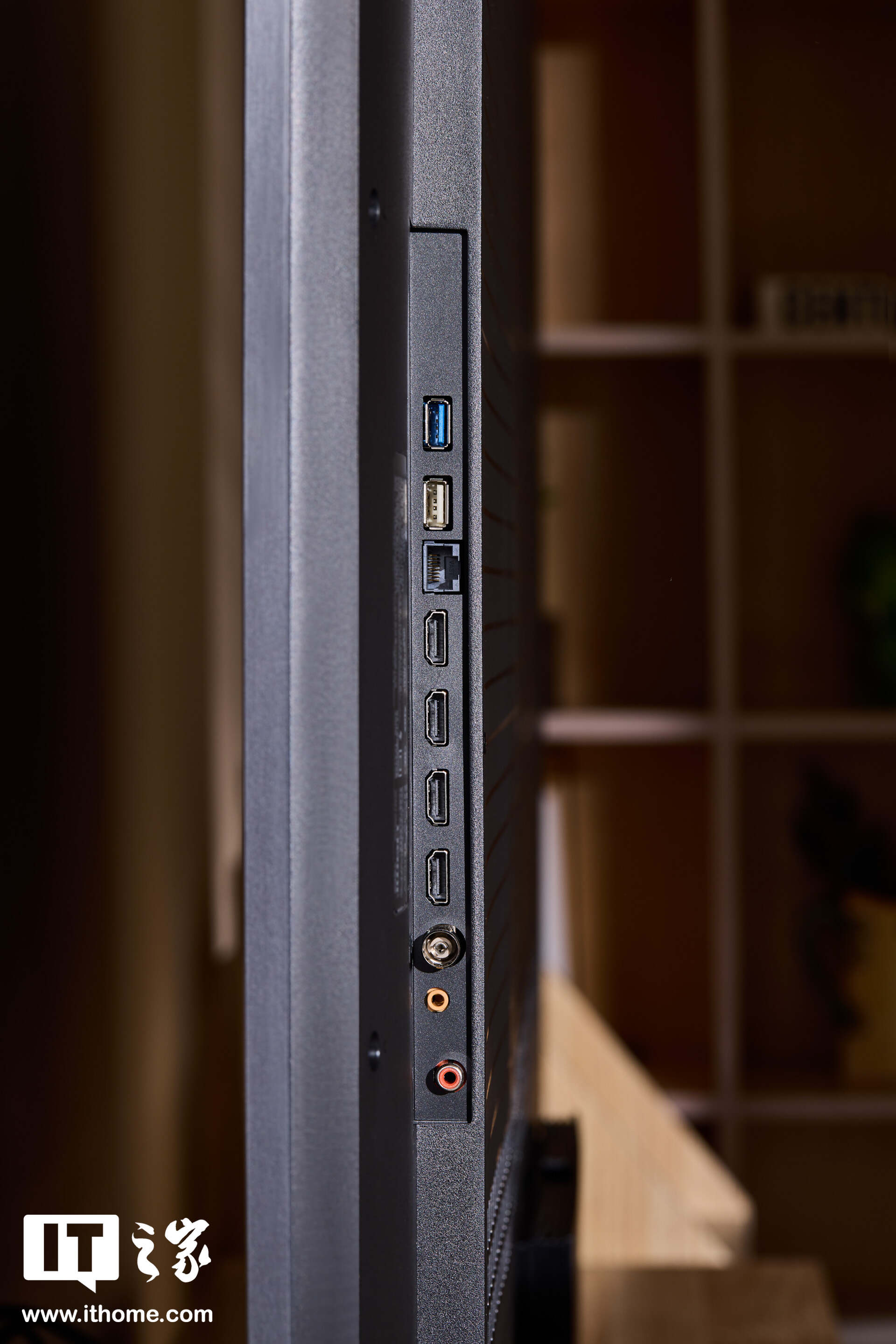 背板设计同样遵循简洁原则,接口布局合理。配置上提供了 4 个“满血” HDMI 2.1 接口、1 个 USB 2.0 及 1 个 USB 3.0 接口,满足次世代游戏和高清数据传输需求。