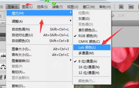 2、将图片转为lab,点开上方图像---模式---lab颜色。