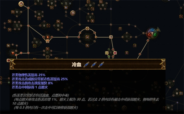 点出左边的大点冷血,提升斧类武器的伤害,向下点出双手武器专精。