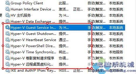 3、然后在其中找到所有VM虚拟化和Hyper-V相关服务,全部禁用就可以了。