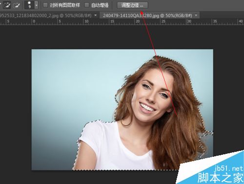 3、运用调整选区这个按钮,可以处理的更加细致,
