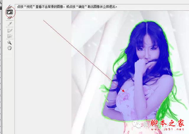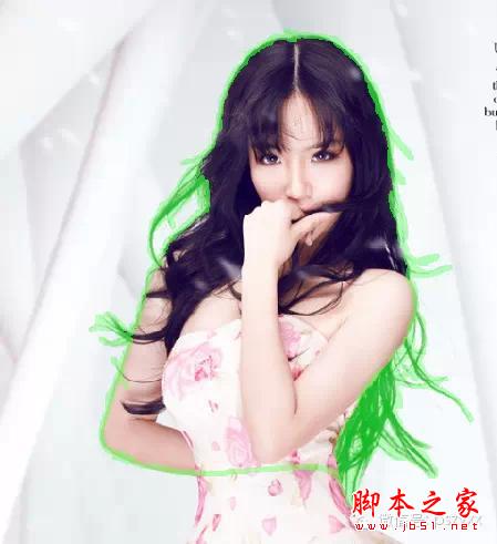 为避免抠出来的图泛白,最好沿着美女皮肤内侧进行抠图。
