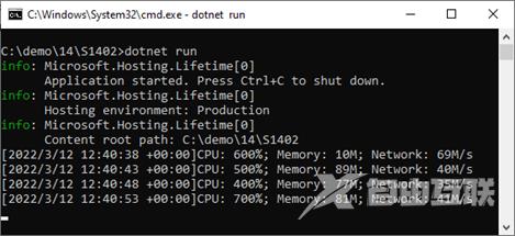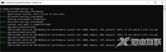 我们最后调用Run方法启动通过IHost对象表示的承载服务宿主,进而启动由它承载的PerformancceMetricsCollector服务,该服务将以图1所示的形式每隔5秒在控制台上输出“采集”的性能指标。