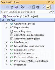 我们定义的MetricsCollector类型实现了三个性能指标采集接口,采集的性能指标直接来源于通过静态方法Create创建的PerformanceMetrics对象。MetricsDeliverer类型实现了IMetricsDeliverer接口,实现的DeliverAsync方法直接将PerformanceMetrics对象承载的性能指标输出到控制台上。