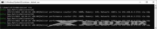 Console.WriteLine($"[{DateTimeOffset.Now}]Deliver performance counter {counter} to {_deliverTo} via {_transport}");