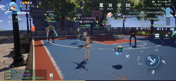 3、到达之后玩家就可以在这里打篮球了,找到篮球场上的篮球,点击发光的三角符号就可以打篮球了。