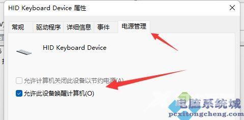 4、打开后,进入电源管理,勾选允许此设备唤醒计算机并保存。