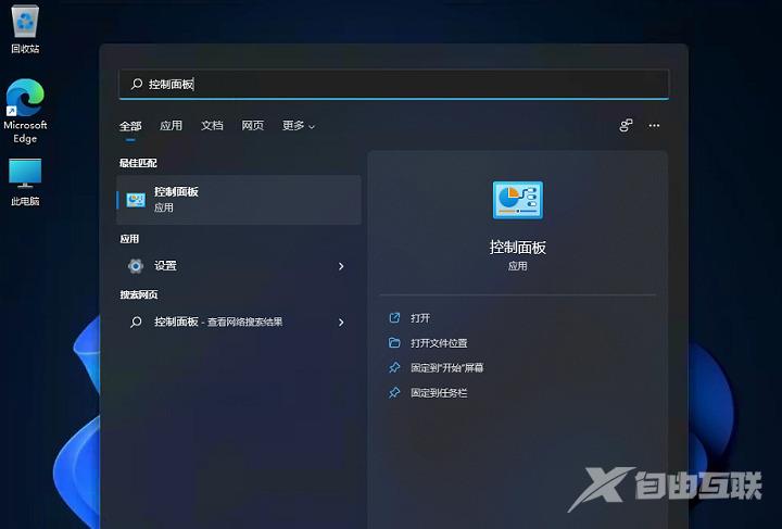 2、然后在搜素栏中输入控制面板。