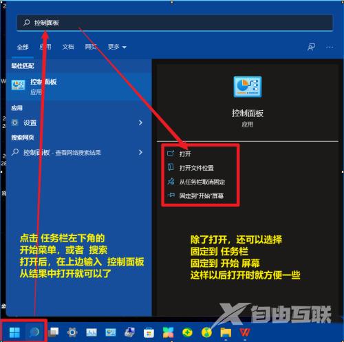 3、之后大家可以选择控制面板应用下面的固定到开始屏幕。