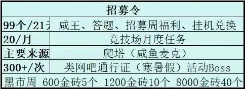 由于咸王宝库奖励不是稳定获取的,所以不计算招募令。