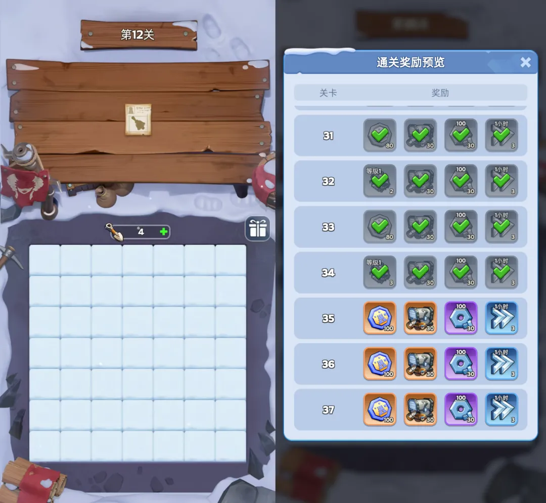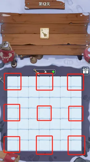 类似于扫雷机制,需要先看物品会占到的格子,然后通过格子猜测,主要也是需要看雷的位置;如果遇到上图只有一个物品且冰块多,那么肯定先随机开区域,然后看物品会占到的格子再去开;