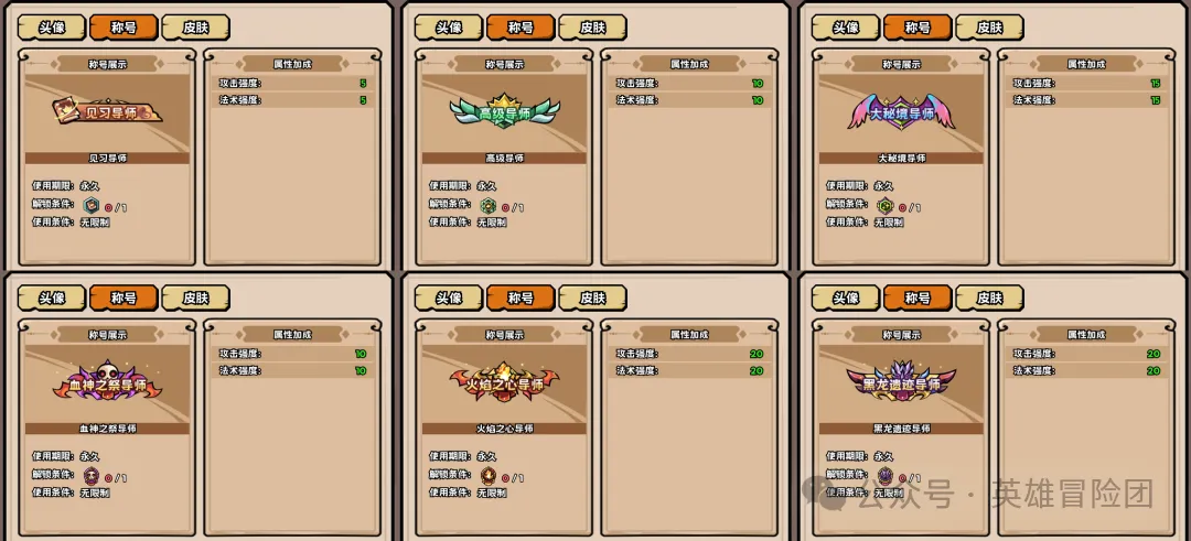 最后是导师称号属性一览: