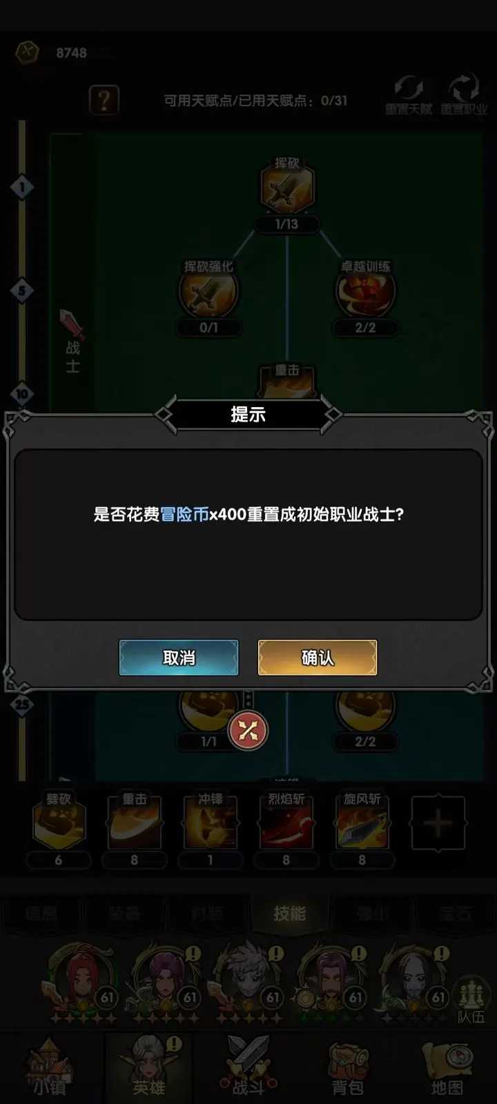 3、那么职业方面大家可以看出法师在这个版本属于T0级别,非氪佬建议老实玩法师阵容可以更有游戏体验(注意50级前可以免费重置职业和技能点,之后要花冒险点所以50前定好阵容)