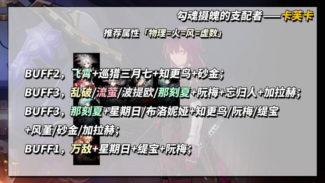 BUFF3,2魂黄泉+椒丘+星期日/花火/布洛妮娅+符玄。