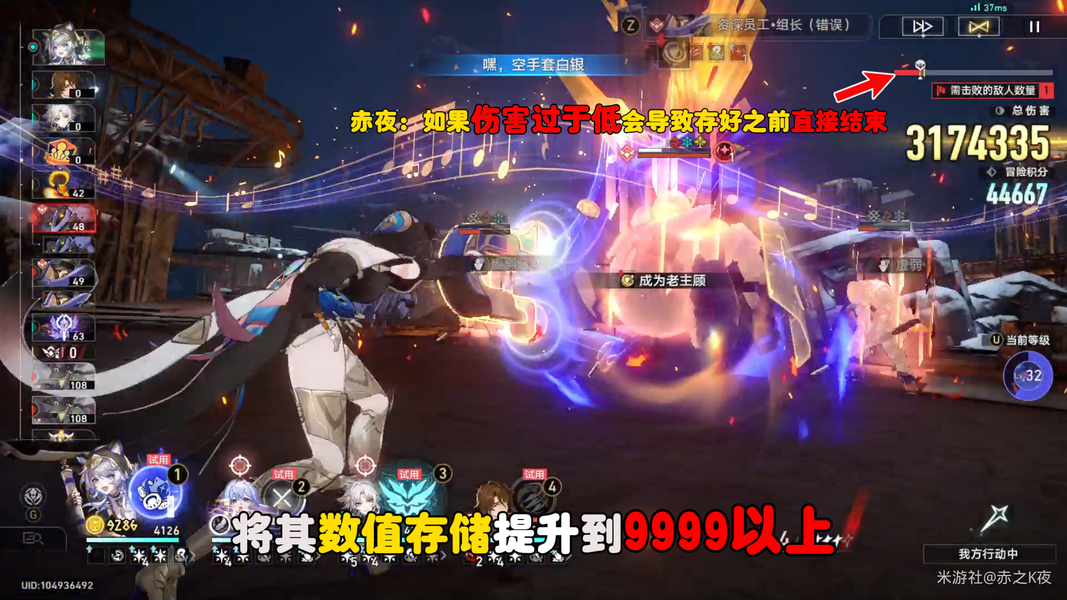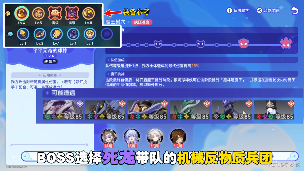 活动最后的魔王巢穴关卡,初始带棒球棒,配队为试用关卡的赛飞儿,知更鸟,飞霄,加拉赫