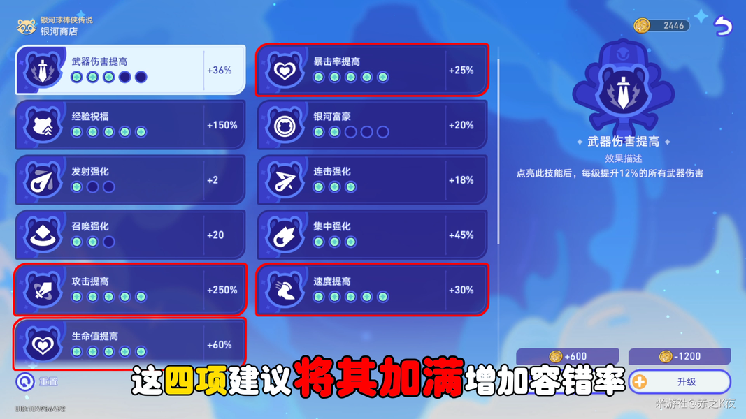 上方四项建议一定将其加满增加容错率(下方几项可以随意)