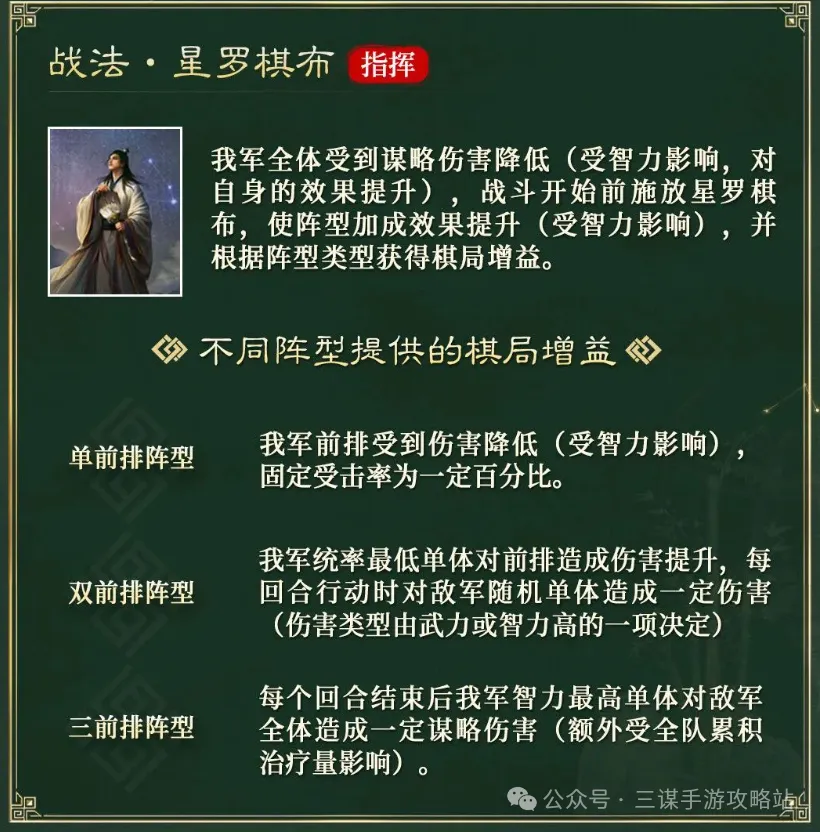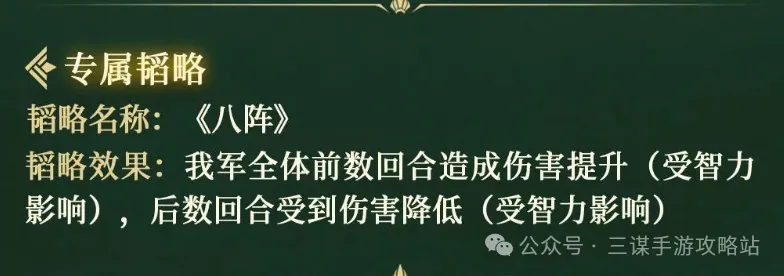 SP诸葛亮自带战法就可以让前排的减伤和后排的增伤都有所提升。