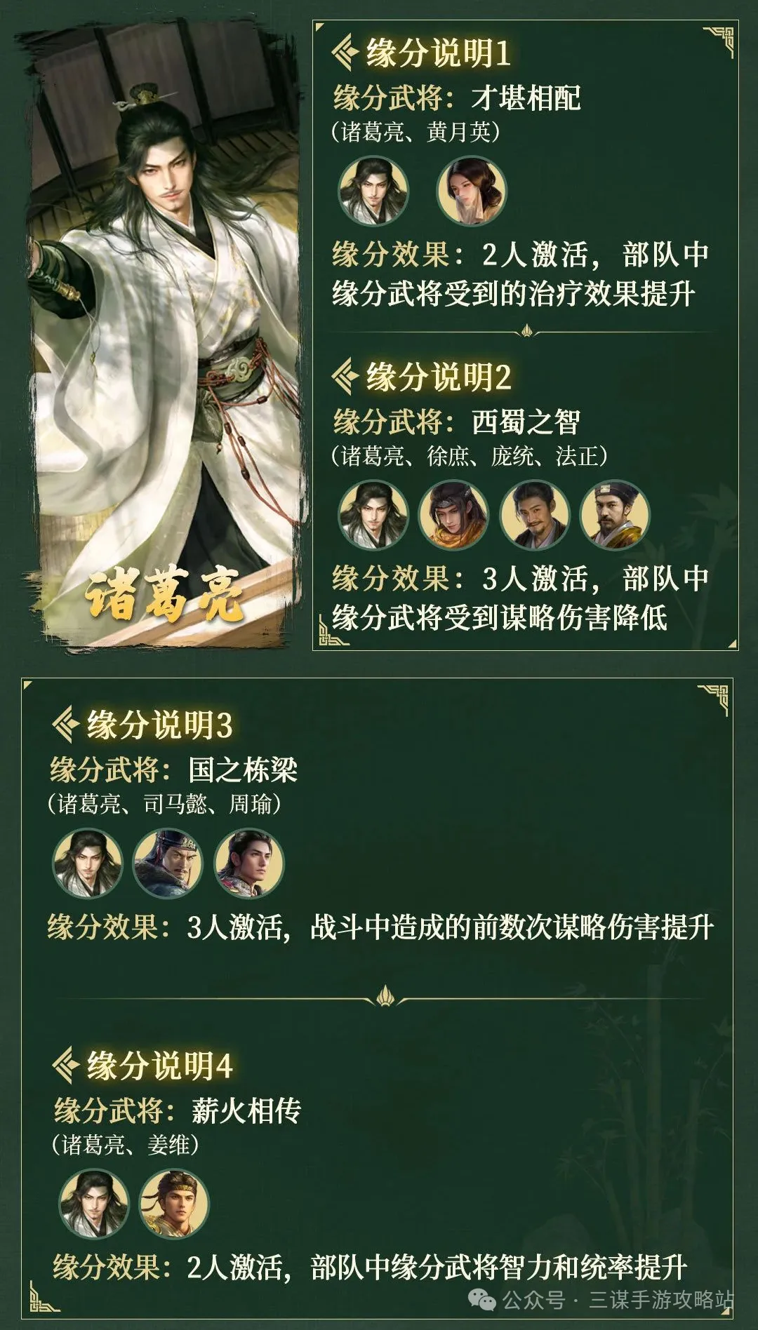 目前看要是想凑缘分队,要么诸葛亮+黄月英+姜维组夫妻姜。
