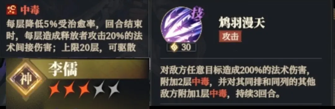 三国志幻想大陆2枭之歌毒队怎么玩?很多喜欢持续伤害的玩家对于毒队情有独钟,游戏中也确实支持这种玩法,毒队的核心机制是通过贾诩、李儒叠加中毒层数,配合减益效果持续消耗敌方,有不少分支流派,下面就为大家分享三国志幻想大陆2枭之歌的各种毒队搭配以供参考!