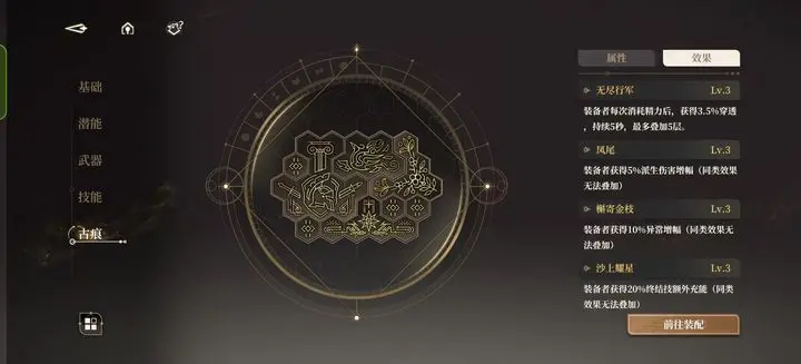 4、至于古痕词条,建议输出和破势所有角色都无脑穿透双爆收益最高。辅助,则视技能说明选择生命或者攻击词条,然后加一个异常专精。第三个词条看着带就好了,一般建议仍然选穿透最优。