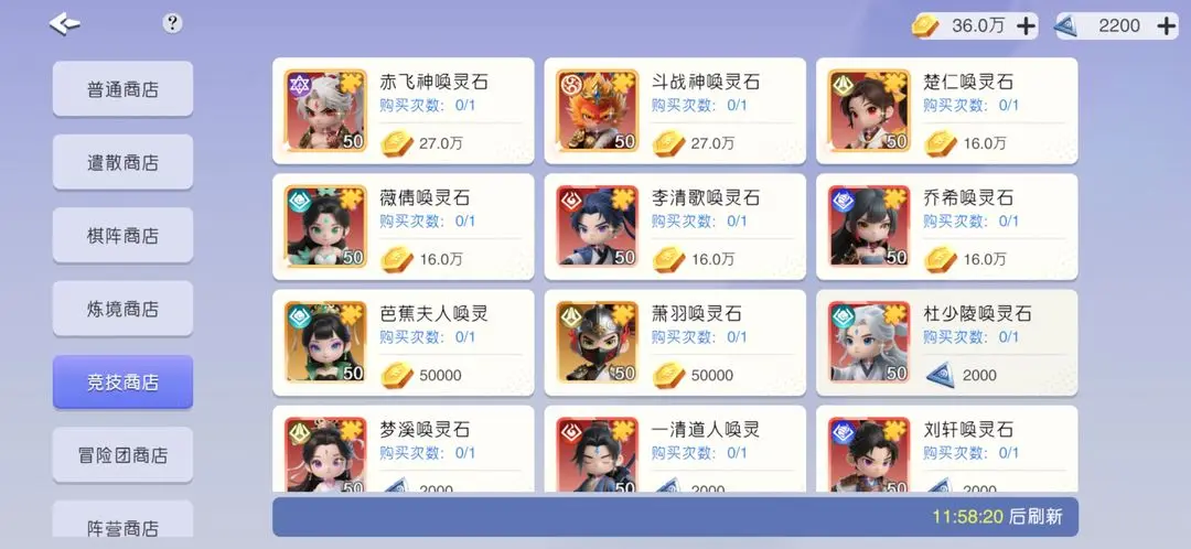 普通商店换前俩个,如图2,前期缺啥买啥,可以甘露,一般9星后会缺,遣散商店推荐换牛或者秦,当做光暗材料或者牛上阵。竞技商店高级币换光暗,低级的换刘轩、公孙之类,前期平民阵容可以玩