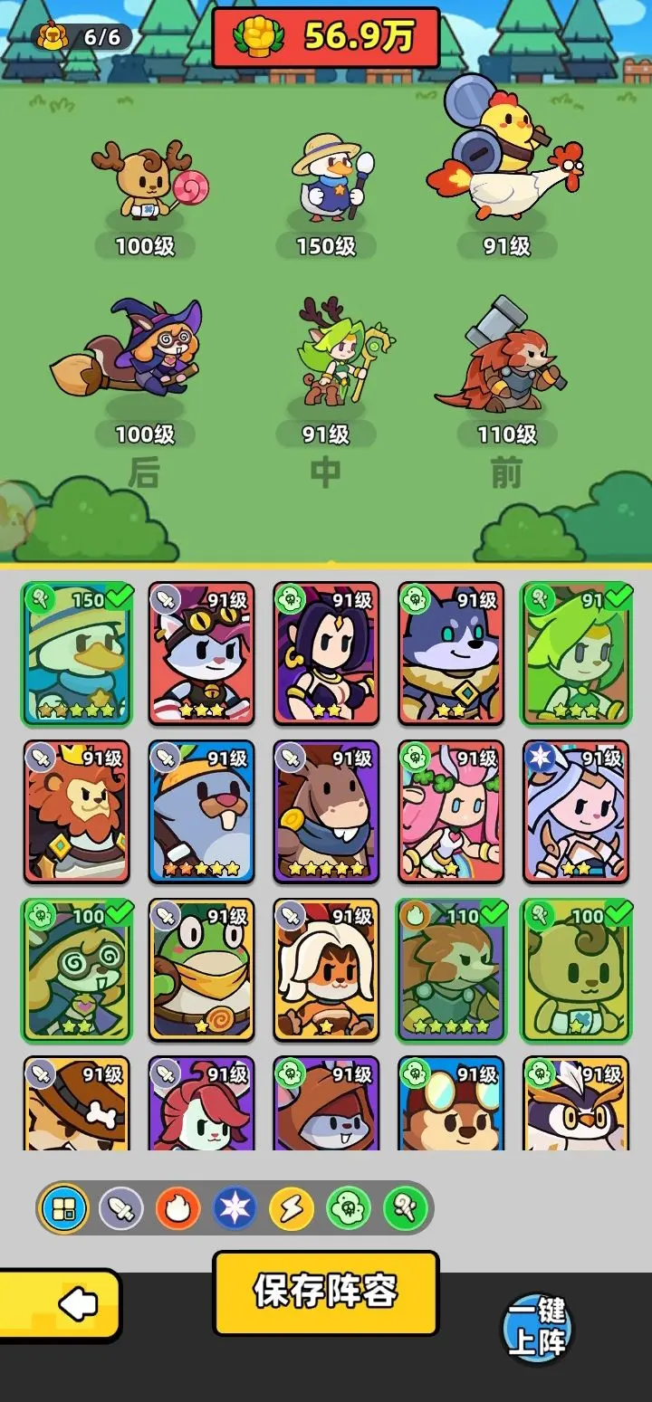 2、因为塔的怪伤害变低了,所以乔巴普攻回血给前排,保证穿山甲可以不断的打出控制。如果它活到最后,还可以无视输出不够。实在过不去适当可以用熊猫,输出够可以换下蓝色鸭子,上猫头鹰。