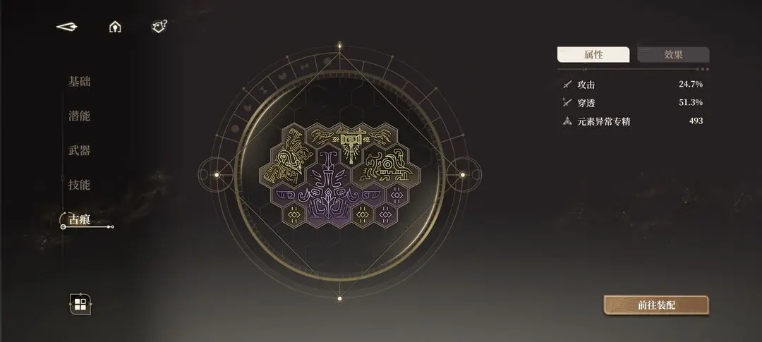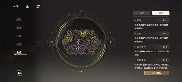 3、古痕搭配:没硬性要求,捡不要的散件就行,主要是堆精通,然后是穿透和攻击,十格用本草,五格最好用淬火熔锤(二技能容易挨打)