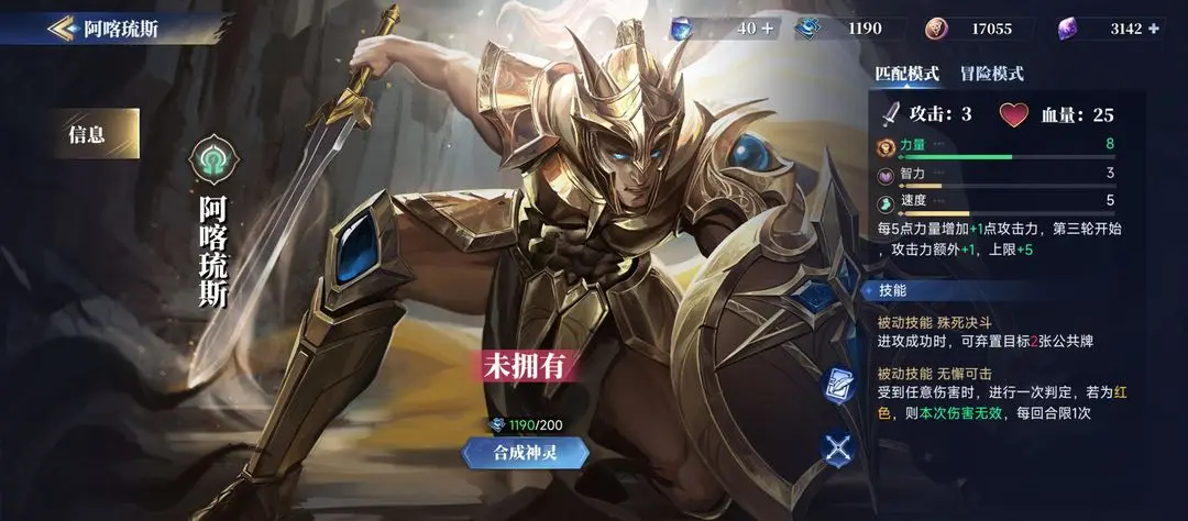 阿咯琉斯,技能简单粗暴,弃牌+免伤,比较克制力量型,但是不好打速度型。