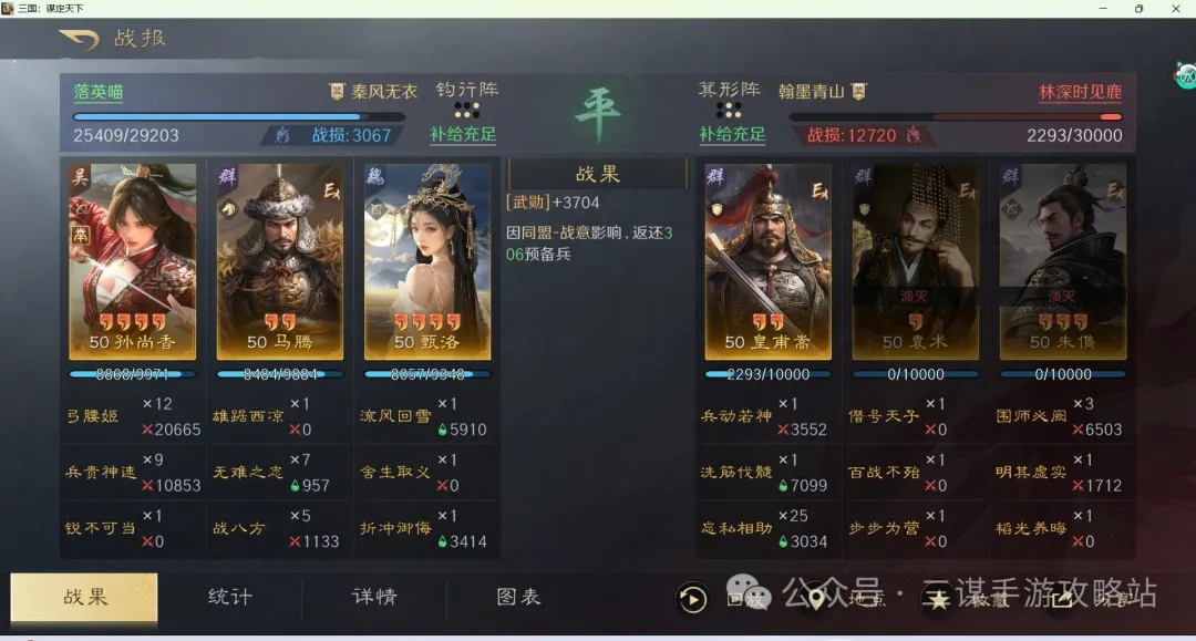第二,举荐香香的虎韬可以让多段伤害打到同一个敌军身上,因此香香不比携带“铁骑横冲”和“千里突袭”,而是携带“兵贵神速”或“横扫千军”等多段伤害技能,反而更容易做到定点秒杀