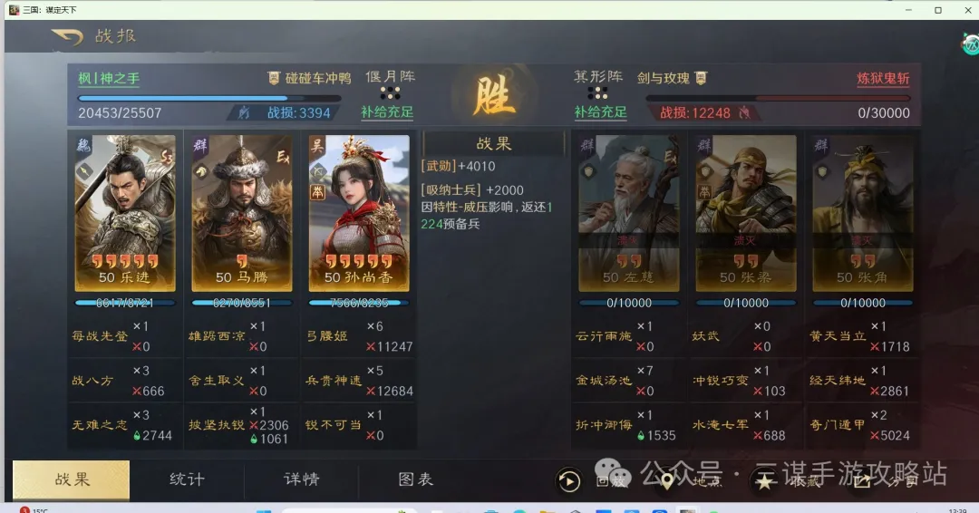 第一,香香作为追击武将,在先版本绑定追击专拐马腾,第三个位置有多种选择,其中乐进和甄洛较适配举荐版本香香