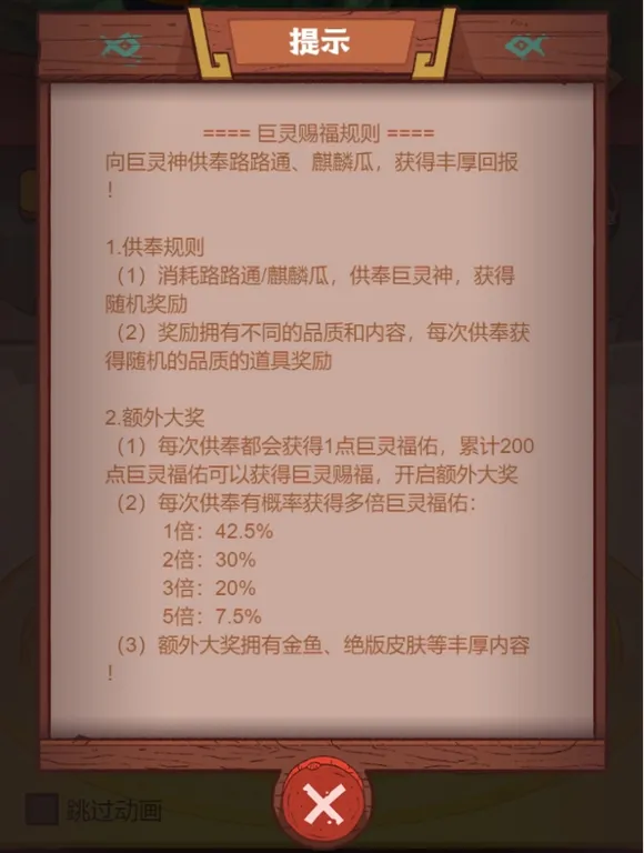 调整后,每次供奉时有概率获得多倍的巨灵福佑。